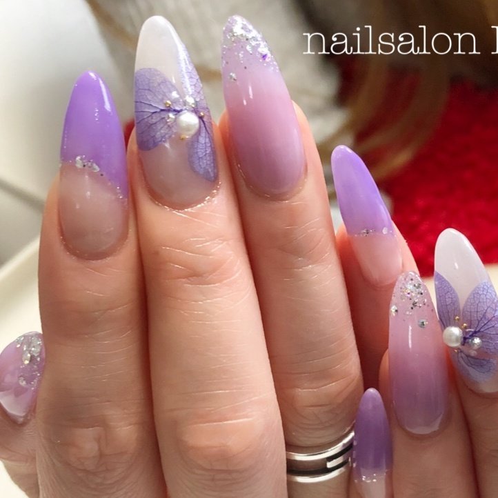 紫陽花の押し花アート Vifnail ヴィフネイル のネイルデザイン ネイル まつげサロンを予約するなら楽天ビューティ