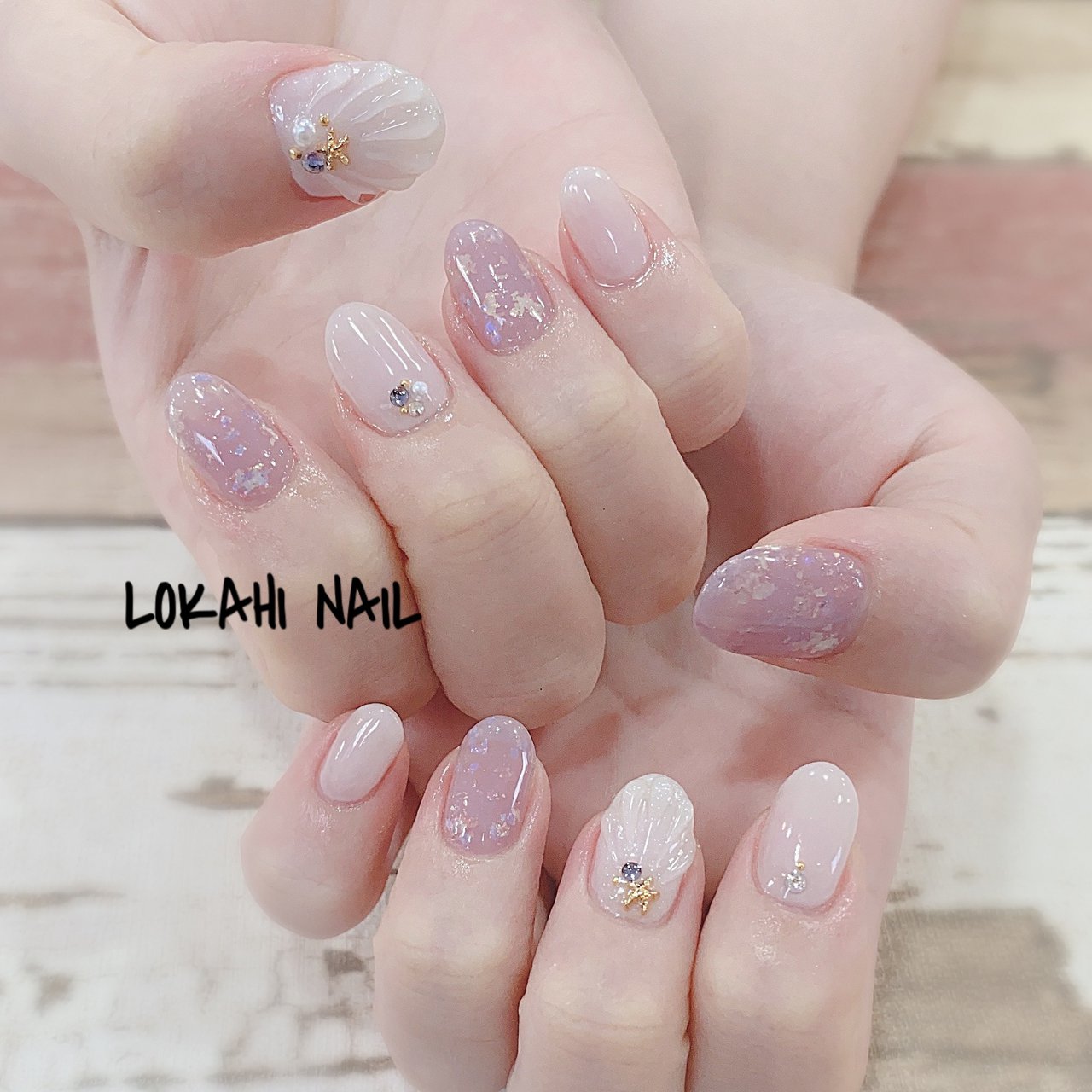 オールシーズン ハンド フレンチ ラメ シェル Lokahi Nail ロカヒネイルのネイルデザイン No ネイルブック