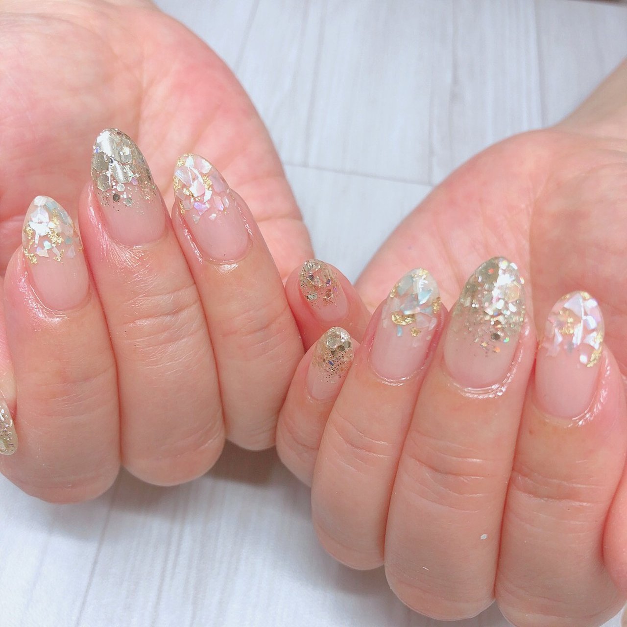 ネイリスト作成 ナチュラルネイルデザイン キラキラホログラムグラデーションで爪が自然にきれいに見えます ˊᵕˋ オールジェルでうるぷるちゅるん ネイル Minne 日本最大級のハンドメイド 手作り通販サイト